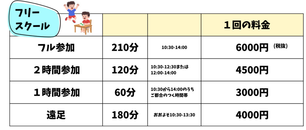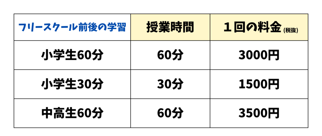 ※フリースクールは「出席した回数のお月謝」を「翌月1週目」にお支払いいただいております。