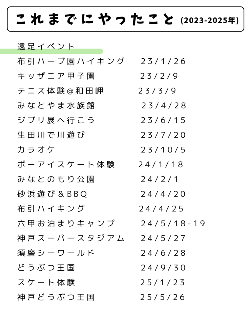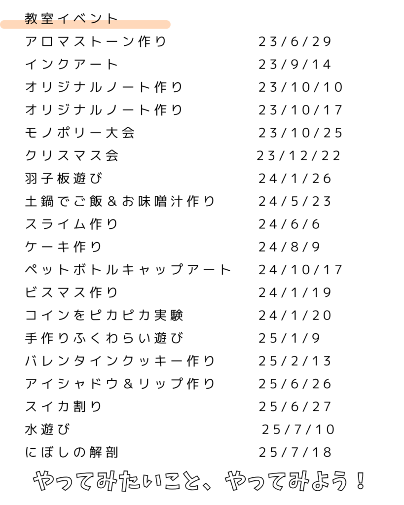 A:LINEグループを作成し、そこで課外イベントの状況をお送りしています。加入希望の方はお問い合わせでその旨をお伝えください。