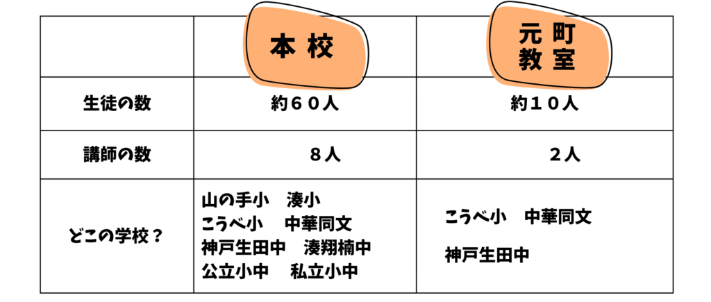 塾には山の手小、こうべ小、神戸祇園小、湊小、神戸生田中、湊翔楠中、中華同文などの児童生徒が来てます!